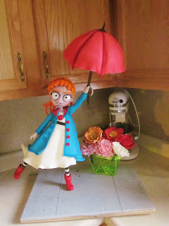 Kursta Betty adinda 5 yaslarinda bir kizi yaptik. Betty yagmurlu ve ruzgarli bir havada giderken ruzgar semsiyesini ucurdugu icin cok sinirleniyor. O nedenle de surat ifadesi sinirli ve endiseli:) Aslinda bence Betty icin Ugly Betty ismi daha uygun olurdu:)).